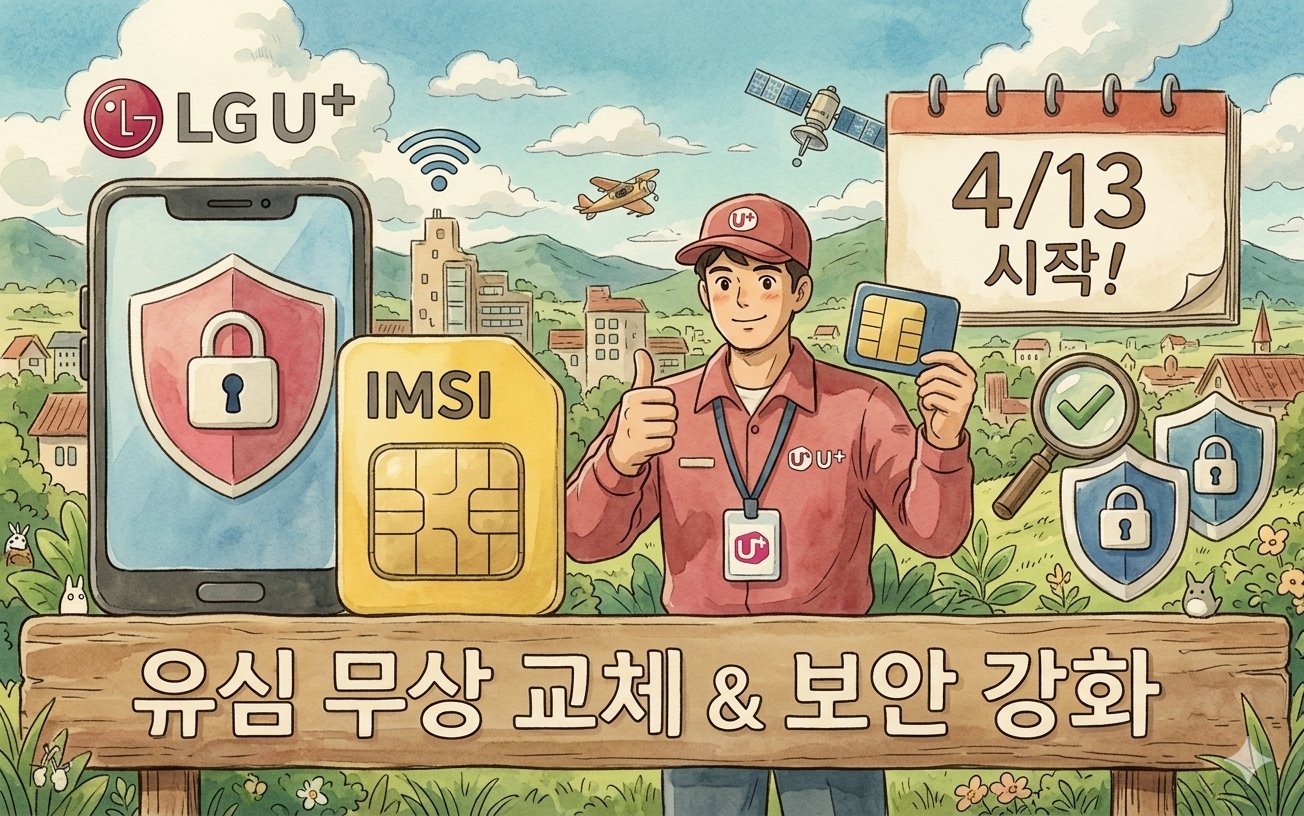 4월 13일부터 LG유플러스 전 가입자 약 1,100만 명의 유심 무료교체가 시작됩니다. 스마트워치·키즈폰·알뜰폰도 포함. 매장 방문 시 신분증과 휴대폰 둘 다 필요하며, 온라인 신청 후 택배 수령도 가능합니다.